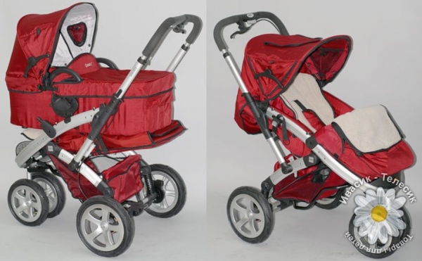 В комплекте: люлька, прогулочный блок, меховой конверт, дождевик,утепленный полог, насос.