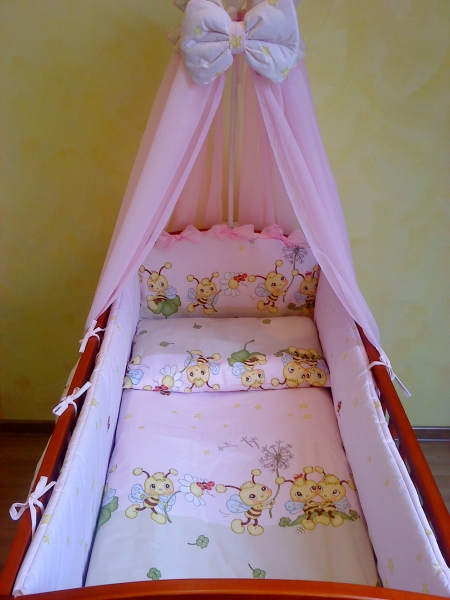 Размеры одеяла:(дхш) 120х90 см Размеры пододеяльника:(дхш) 120х90 см Размеры борта:длина, высота 360*33 см Размеры простыни:(дхш) 120–125х60 см Размеры подушки:(дхш) 40х60 см Размеры наволочки:(дхш) 40х60 см