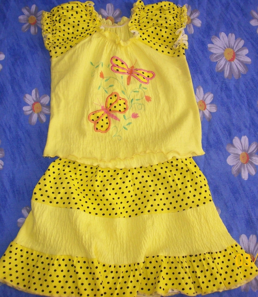 фото 3— летний жёлтенький костюм (ткань — жатка + хлопок), на 2–2,5 года — 50 грн длина маечки — 30см, ширина маечки — 27 см (половина)