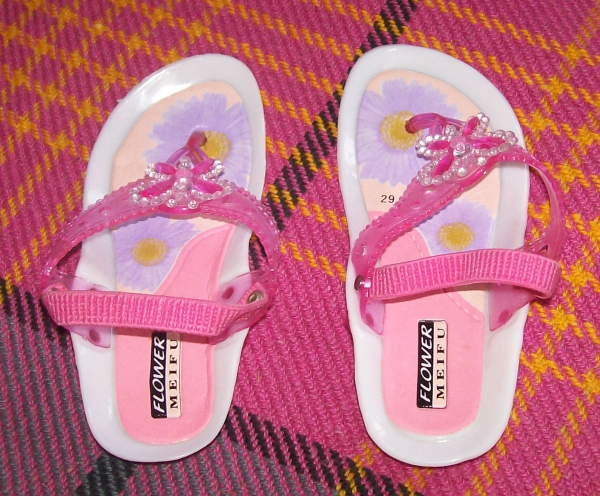ФОТО 1 — шлёпки розовые с браком (оторван камушек на левой шлёпке) — 20 грн