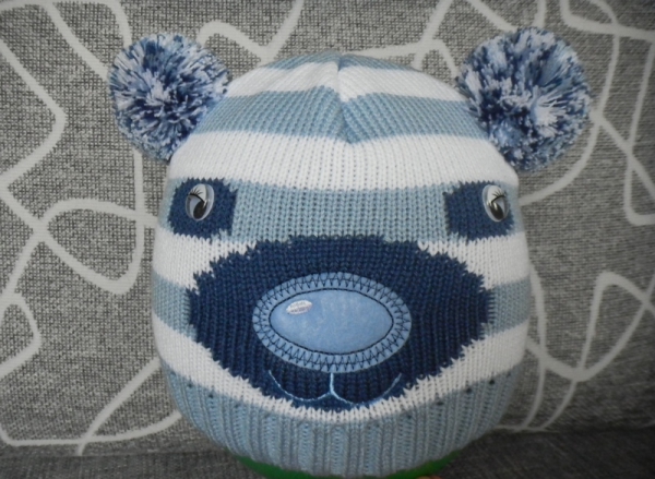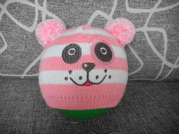 Замірки(±1см) : Висота – 17 см; Ширина – 18 см; Ширина шапочки в розтягнутому вигляді – 25 см. Шапочка одинарна.