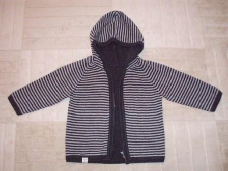 Кофта с капюшоном, теплая, шерстяная, двусторонняя, на молнии, б/у. С одной стороны — темно-серая , с другой — темно-серые и светло-серые полоски. Можно носить как легкую курточку. Размер — 86 см, на 1,5–2,5 года. Цена — 150 грн.