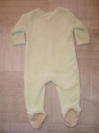 Плюшевый нежно-салатовый комбнезончик, б/у. Застежка на молнию, аппликация, пяточки прорезинены против скольжения. Размер — 74 см, на 9–15 мес. Цена — 100 грн.