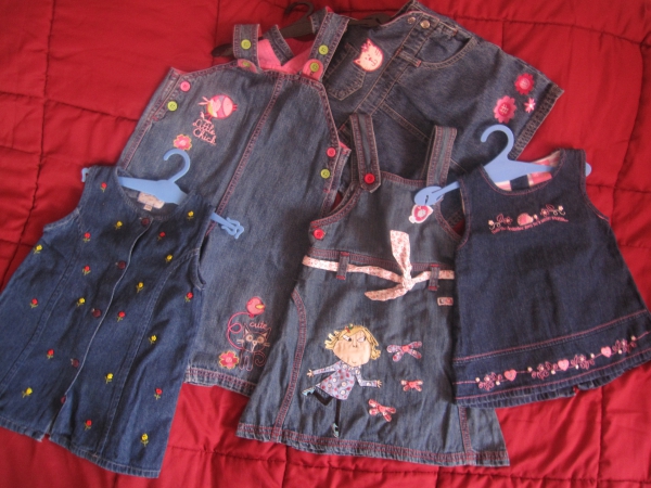Есть разные платьица хб, джинсовые сарафанчики, комбиджинсики (от 25,до 200 джинсовое платье и сарафанчик со стразами и бисером, но покупала очень дорого, поэтому эти 2 вещи дешевле не отдам), юбочки (30–50),кофточки,футболочки класснючие на лето (20–30 грн.),