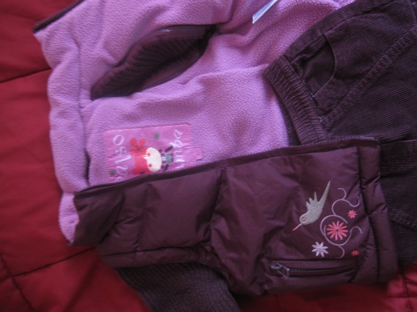 Теплая баклажанового цвета курточка (100) на замочке с отстегивающимися рукавами. Очень удобная и практичная в стиркеТеплые штаны — комбезиком отдам в нагрузку.