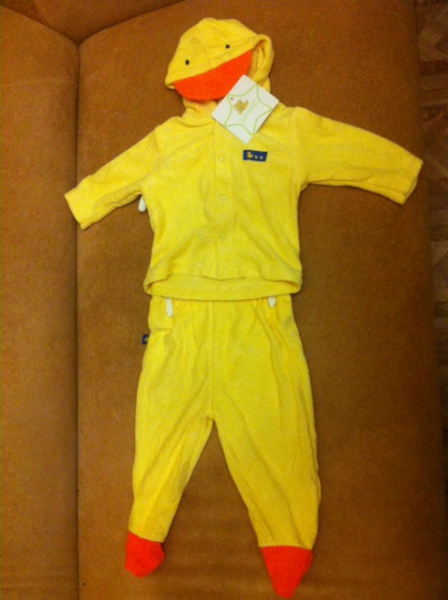 Веселый и интересный плюс отличного качества костюмчик утенка для Вашего малыша 3–6 месяцев. Состоит из штанишек и кофточки. Родом из США.