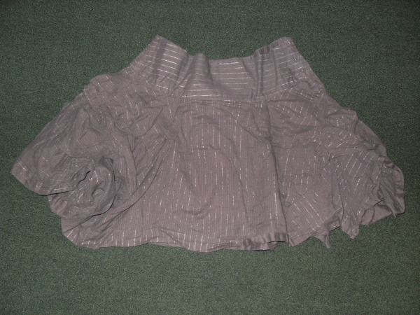 Серая юбка ( по бокам воланы, необычный покрой) пояс 60см; длина 33см.