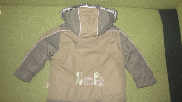 В прекрасном состоянии! Очень удобный, теплый и практичный. За счет регулировки рукавов на курточки и на брюках ребенку хватит на два сезона.