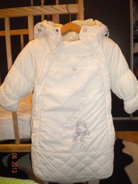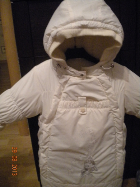 класный зимний комбез, на меху — овчине, одевали несколько раз, даже мех не примялся. Состояние отличное. Подойдет от 0–7 мес. На рукавах царапушки. Капюшон регулируется. Очень теплый, не пожалеете