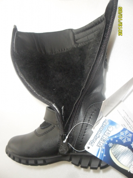 Детская обувь Термо имеет специальную термо стельку,которая сохраняет тепло до -30 С.Внутренняя сторона обуви состоит из 80% натуральной овечьей шерсти.Подошва с термоеластопласта не пропускающего холод и влагу,обеспечивает хорошее сцепление с скользкой поверхностью.Материал верха – кожа комб