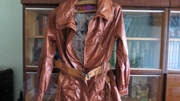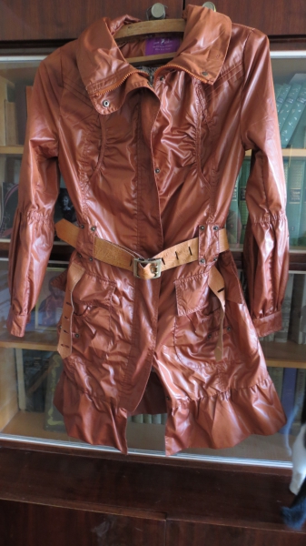 Размер SI (M)(38), приблизительно на девочку роста от 162. Плащ новый, когда мерили отлетела одна кнопочка внизу, а так даже на улицу не носили. Фирма-изготовитель — Snow Beauty. Ткань — плащевка со вставками кожзама. Очень стильный. Цена 250 грн.