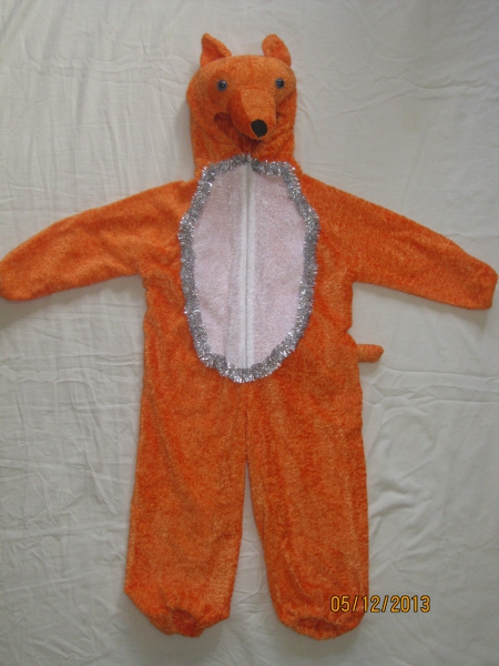 На 3–4 года. Цельный костюм-комбинезон на молнии с мордочкой лисицы на голове и сзади с хвостом.Цена 50 грн.