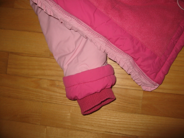 Куртка с отстегивающимся капюшоном (очень хорошо закрывает шею). Рукава куртки с отворотом для регулировки длины и с трикотажными манжетами внутри, сохраняющими тепло. Внутри куртки — флис.