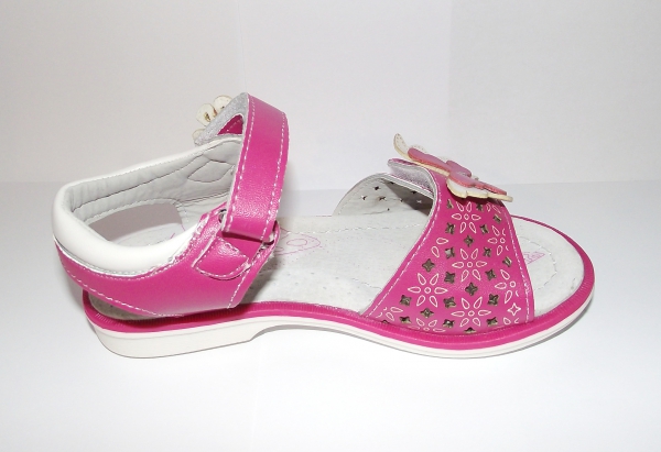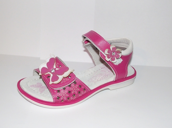 ЦЕНА 115 ГРН Мы предлагаем вашему вниманию детские босоножки на липучке. Застегиваются на две липучки, с помощью которых можно отрегулировать объем ножки. Носок и пятка открытые. Детская ножка выглядит элегантно, а наши девочки красавицы. Спереди украшают детские босоножки бабочка. Материал верха — кожзаменитель. Стелька из кожи, прошита к подошве, поэтому и не снимается. Подошва из высококачественной резины. Проклеены хорошим клеем. На ножке смотрятся красиво и аккуратно.