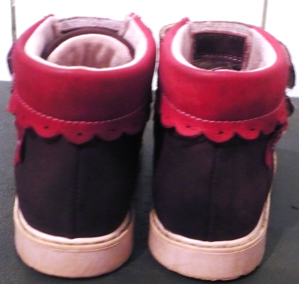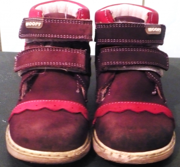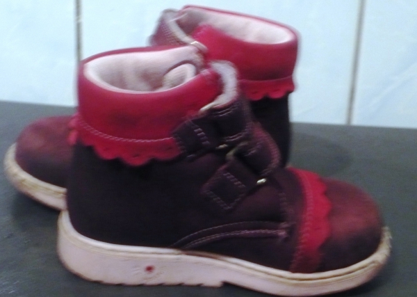 Демисезонные ортопедические ботинки фиолетового цвета. Сверху регулируются двумя липучками. Снаружи нубук, внутри на флисе. Есть супинатор, ортопедический высокий задник, каблук Томаса. Размер: 21. 13.7 см по стельке. Цена: 200грн.