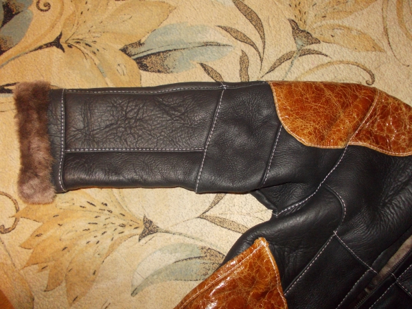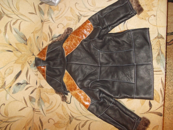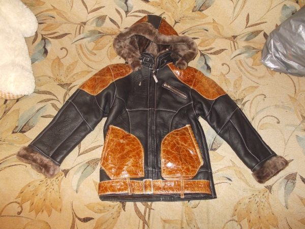 Натуральная кожа. Состояние идеальное, одевалась буквально три раза — потом выросли с нее.