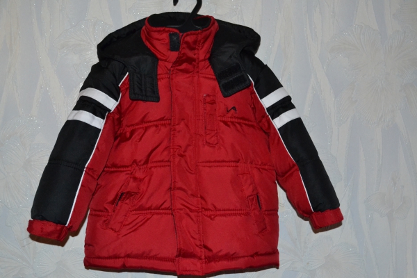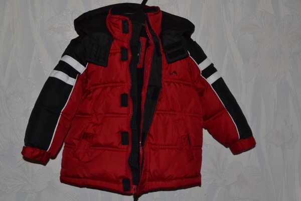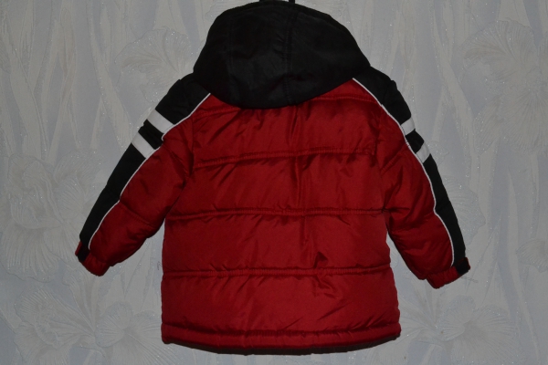 Американская курточка на мальчика 2–3 года. Качество перфектное, состояние новой вещи,одевали 4 раза. Теплая,подкладка флисовая,и капюшон тоже внутри флисовый, одевали в ноябре в +5 — тепло и комфортно. Есть один маленький недостаток — на грудном карманчике розошелся шев на 5 мм (есть на фото),но устранить эго легко и просто, сделаю скидку на устранение этого ньюанса.