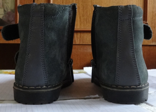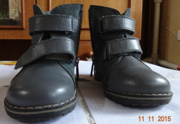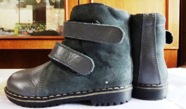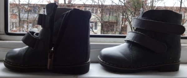 Материал — кожа. Застегиваются на липучках + змейка. Ортопедические — жесткий задник формирует правильную постановку ноги и походку.