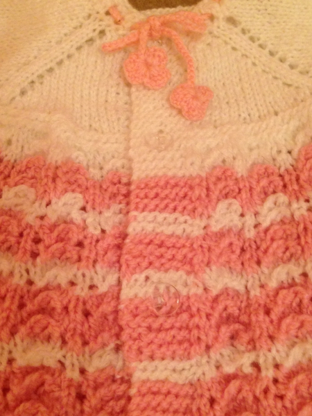 Милейшая вязанная кофточка для девочки 4–6 месяцев (смотрите длину кофты). Кофта связанна вручную шерстяными нитками с добавлением хлопка для практичности.