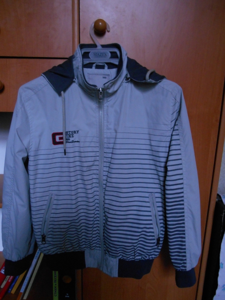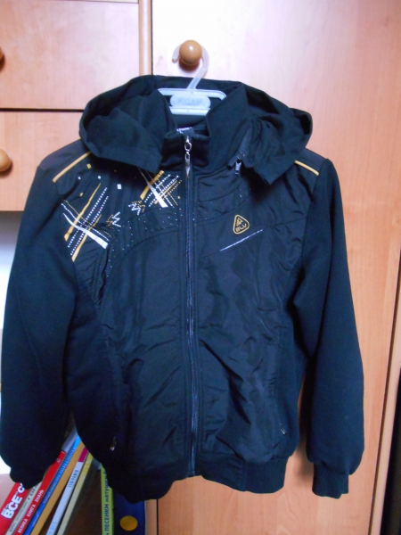 брюки вельветовые черные 50 грн ветровкасветло-серая в полоску с капюшоном на трикотажной подкладке 50 грн спортивная куртка, ткрикотаж черная со вставками с капюшоном на молнии 50 грн рубашки белая и голубая 30 грн