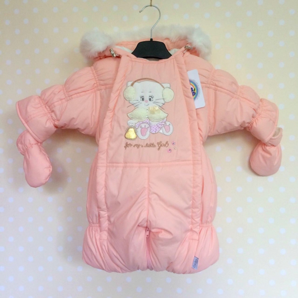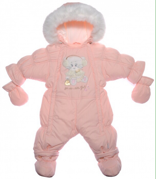 Моделька украшенааппликацией-вышивкой в виде кошечки, которая делает комбинезон очень привлекательным. Застегивается на две молнии, которые позволяют быстро и легко расстегнуть комбинезон и облегчить процесс одевания. Ножки и ручки пристегиваются на кнопочки. Капюшон декорирован опушкой из искусственного меха, которую можно отстегнуть. Капюшон не отстегивается.