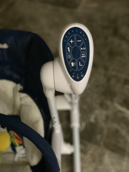 Наличие колес: нет Блокировочные тормоза: нет Корзина для вещей: нет Цвет: синий Качель предназначена для детей с первых дней жизни и до 9 кг. Стульчик для кормления детей в возрасте от 6 месяцев и до 3–4 лет (с максимальным весом 15 кг). Дополнительный мягкий вкладыш для маленьких детей. Простой механизм складывания для удобного хранения. Центральный блок управления работает от батарей (4 х LR14) или с помощью прилагаемого адаптера переменного тока. Регулируемая скорость качания. Таймер, который позволяет остановить раскачивание автоматически после 8, 15 или 30 минут. Прочная и стабильная конструкция рамы гарантирует длительное и безопасное использование. Съемная дуга с плюшевыми игрушками