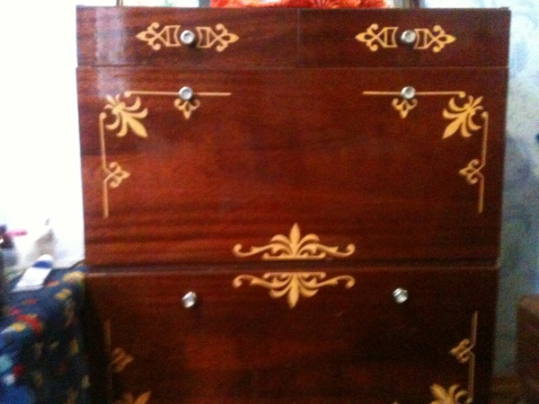 комод:темно-коричневый окрас, палероканый, на два отделения + две шухлядки, красивый