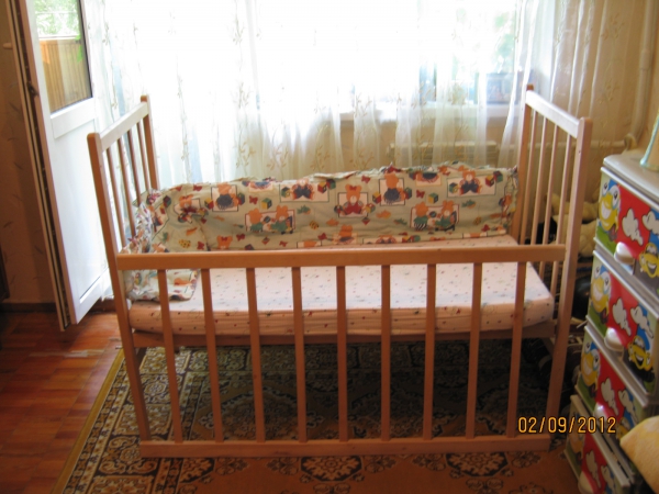 Детская короватка из натурального дерева — сосна, не покрыта лаком. Высота стенок регулируется. В комплекте матрас (кокосовая стружка) в хорошем состоянии. Цена — 400 грн.