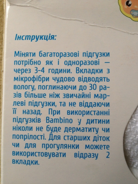 Стоимость дополн. упаковки вкладшей 1 шт.-12 грн.