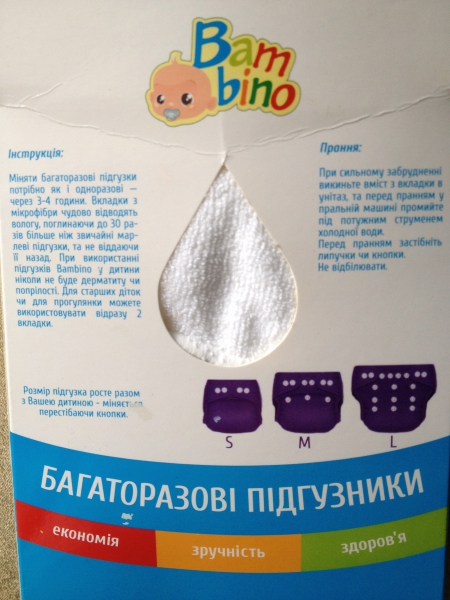 Новинка от ТМ Bambino многоразовые подгузники! Мамы всего мира уже давно оценили преимущество именно многоразовых подгузников, потому что только при их использовании у деток не возникает проблем с дерматитом, покраснением и аллергией! Среди других преимуществ -это значительная экономия бюджета, что очень актуально в «наше время».Продукция изготовлена в Канаде на фабрике Rearz Inc., Ontario, Canada. Продукция прошла проверку и получила св-во СЭС о безопасности и соответствии нормам.