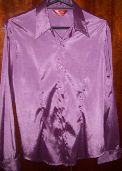 ФОТО 3 — БЛУЗКА СИРЕНЕВАЯ БЛЕСТЯЩАЯ, ( РАЗМЕР S) — 50 ГРН ДЛИНА — 64 СМ, ДЛИНА РУКАВА — 60 СМ