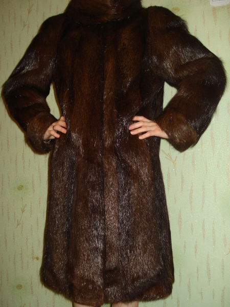Предлагаю свою шубку из нутрии. Коричневый цвет, крой — трапеция. Воротник — стоечка, застегивается на пуговку. Носила не долго, т.к. были еще варианты на замену.
