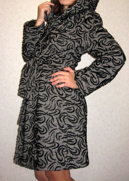 Продам демисезонное пальто свободного покроя для девушки, б/у. В отличном состоянии. Капюшон на пуговицах, отстегивается. Пояс съемный. Ткань мягкая. Узор выполнен стриженным мехом.