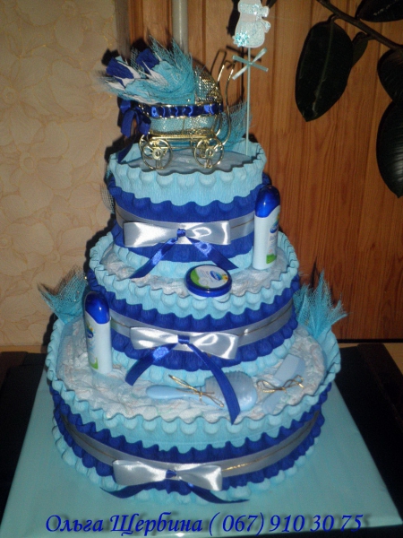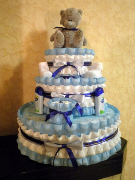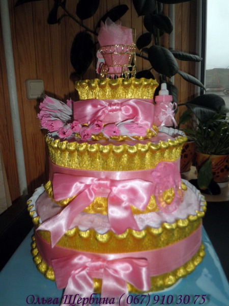 Торт из подгузников это эффектный и незабываемый подарок на выписку, крестины, смотрины.