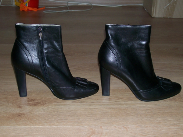 Продаю женские демисезонные ботинки марки Deenoor 40-го размера. Новые, кожаные, внутри легкое утепление. Носок украшен бантом на металлической пряжке. Высота каблука 9 см. Цена: 635 грн