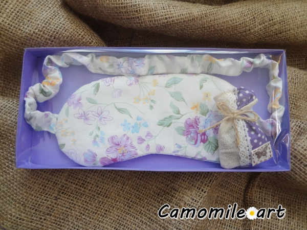Размер маски 18,5х8 см. Саше: эфирные масла лемонграсса и лаванды, травы душицы, шалфея и чабреца.