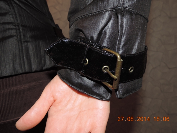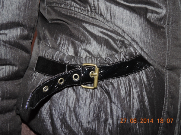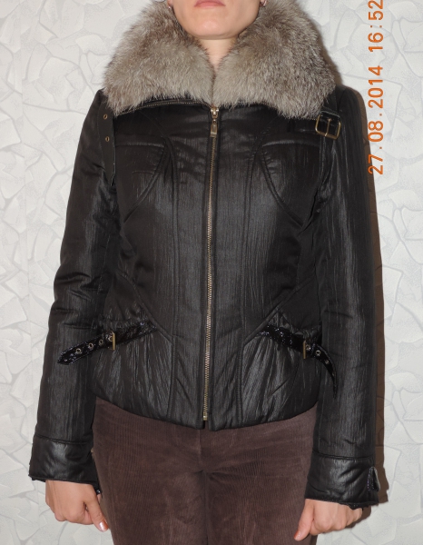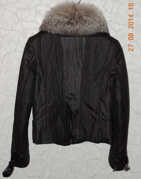 Ткань жатка,лаковые вставки,очень богатый мех,демисезонка(на тонком синтепоне).Состояние новое.950гр.