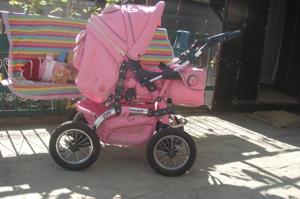 Коляска трансформер 3 в 1, розового цвета. В хорошем состоянии. Недорого!!!