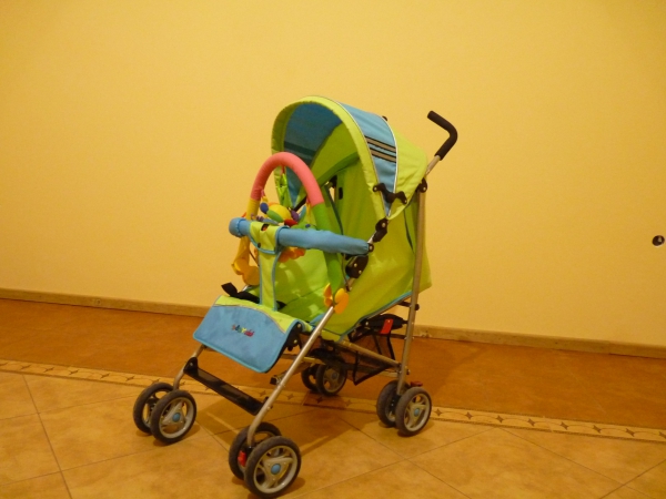 Легкая прогулочка-трость Ваву Сlub от 6 месяцев и до трех лет. Отличная коляска. Несколько положений спинки до полностью лежачего, плавающая подножка для комфортного сна, дополнителная подножка для ножек. Ремни безопасности и перекладина. Передние колеса поворотные с фиксацией. Очень просто складывается тростью, в сложенном виде стоит самостоятельно. Малый вес – всего 5, 5 кг. Чисто выстирана, все работает, без поломок, пятен и потертостей.