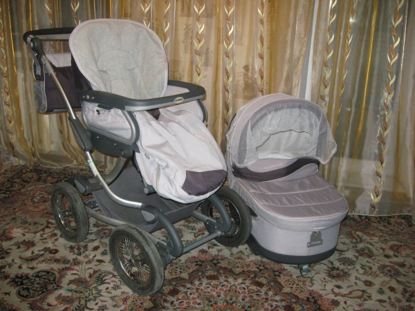 В комплекте: шасси, прогулочный блок,люлька-переноска , полог, мягкий матрасик, сумка для мамы, корзинка для покупок, дождевик, противомоскитная сетка, насос.