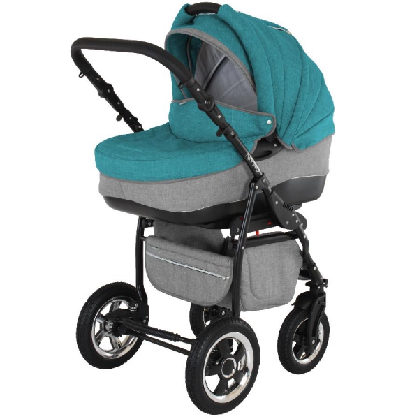Универсальная коляска Adamex Nitro Len 2 в 1 Большая просторная люлька с пластиковым основанием внутренняя обшивка люльки 100% хлопок; подголовник регулируется по высоте; Капюшон регулируется безшумно, ручка для переноса люльки, для дополнительной защиты имеет встроенный козырек с силиконовой вставкой