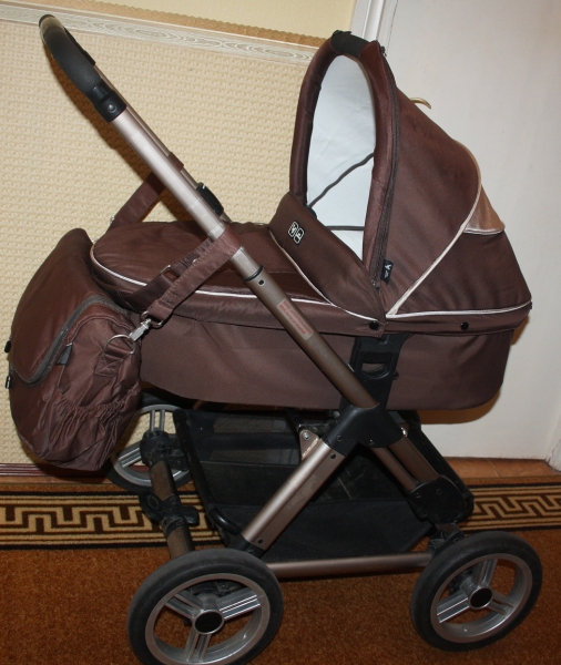 Коляска в хорошем состоянии.В комплектацию входят люлька и прогулочный блок, москитная сетка и дождевик. Преимущества коляски — большие поулиритановые колеса, вместительная корзина, легко складывается шасси.