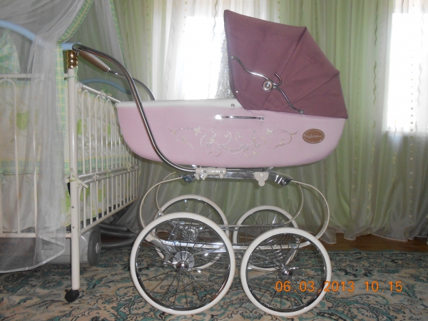 Коляска очень красивая,удобная,имеет необычный вид,сделана под старину,отчего получила название классика.её преимущество-люлька больших размеров, увидев её однажды Вы не останетесь равнодушным и сразу влюбитесь в неё.ТАКЖЕ,КАК ЭТО СЛУЧИЛОСЬ СО МНОЙ!!!Состояние идеальное(фото прилагаются),торг уместен.В комплекте идёт пеленальный матрасик,дождевик,сумочка для мамы и ребёнка,чехол для люльки.На все вопросы отвечу лично.Звоните.