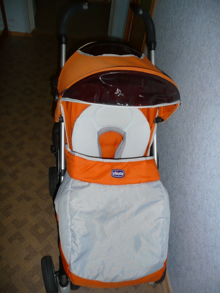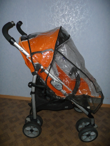 В комплект поставки входят теплый чехол на ножки, дождевик, а также — подголовник.
