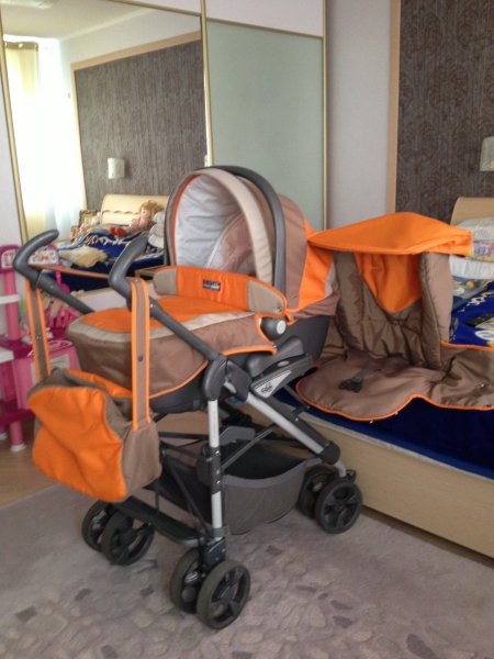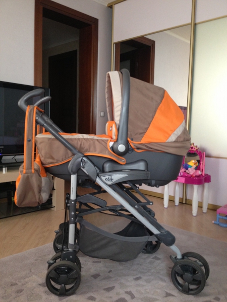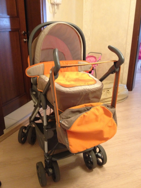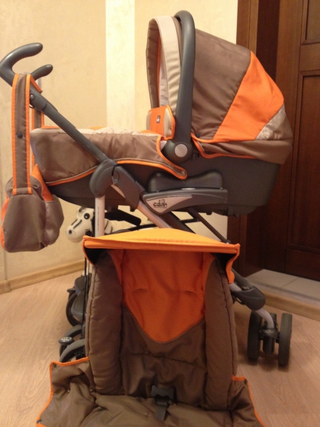 Отличная коляска в хорошем состоянии.Комплектация: жесткая люлька, прогулочное сидение, капюшон, сумка, дождевик, накидка на ножки. Люльку можно использовать для перевозки в автомобиле, она оснащена системой, которая позволяет устанавливать и снимать люльку быстро и легко. Положение дна люльки регулируется в 3 х положениях. Прогулочный блок в 4 х положениях. Коляской остались довольны и мы и доченька. Цена 700 грн.