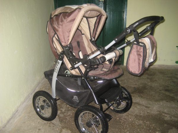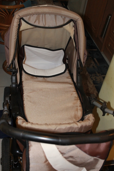 использование – до трех лет;колеса – четыре, надувных, камерных, на стальных дисках со спицами;амортизация – пружинная, четырехточечная с регулировкой;тормоза – с обеих сторон;ручка – перекидная, регулируемая по высоте;прогулочный вариант – съемное ограждение (поручень), регулируемая подножка и спинка, ремни безопасности, дополнительная подножка;ткани – водоотталкивающие, натуральные, не вызывающие аллергию;комплектация –люлька-переноска для новорожденных, капюшон с летним сектором и дополнительным карманом, дождевик, полог на ножки, сумка, корзина;вес – 12 кг.;габаритная ширина – 58 см.;производство – Anmar (Польша)цвет-коричневый
