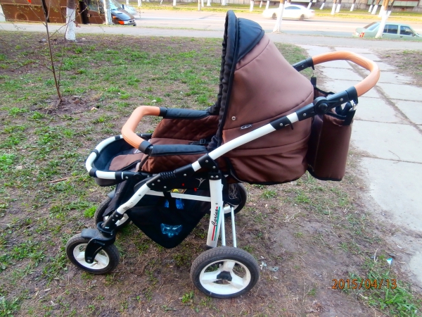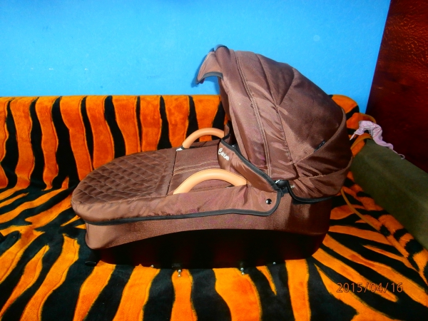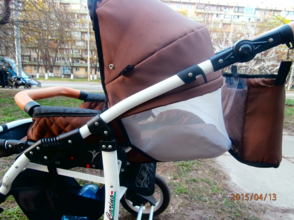 Продам нашу любимую колясочку! Очень удобная и продумана до мелочей. По 5 бальной шкале оцениваю на 4.Есть дождевик, чехол на ножки, москитная сетка, сумка, большая корзина. Ещё в прогулке в разложеном виде отстёгивается низ капюшона и получается низ из москитной сетки (на фото), т.е. ребёнок может лежать и рассматривать всё вокруг. У коляски очень хорошая амортизация, никакие барьеры не страшны))) Поменяли одну камеру. Ещё на чехле на ножки в прогулке отлетела левая кнопка, по-возможности сделаю или уступлю на ремонт. Люлькой пользовались совсем мало — месяцев 5. Вообщем звоните,пишите — отвечу всем!!!!