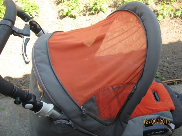 Замечательная коляска в хорошем состоянии, все рабочее. После одного ребенка. Надувные колеса гарантируют плавный мягкий ход даже по нынешним дорогам, а ручной тормоз очень пригодится на подъемах/спусках и на эскалаторах. Очень маневренная. Легко складывается/раскладывается. Самое главное — ребенку ОЧЕНЬ просторно.