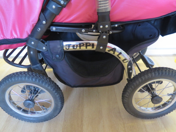 — прогулочный блок: защитный чехол на ножки. Спинка опускается в 3х положениях. Широкое спальное место. Пяти точечные ремни безопасности с мягкими накладками на плечики. Меняется положение подножки (вертикально или горизонтально). Ручка перекидная на два направления движения, имеющая разный уровень высоты — на самом высоком положении очень удобна для высоких родителей.