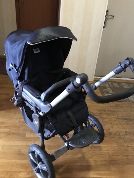 Ручка в данной модели регулируется, тормоза на задних колесах.В модели есть большая корзина. Коляска с системой Quicky, которая помогает быстро установить люльку на шасси.Она оснащена